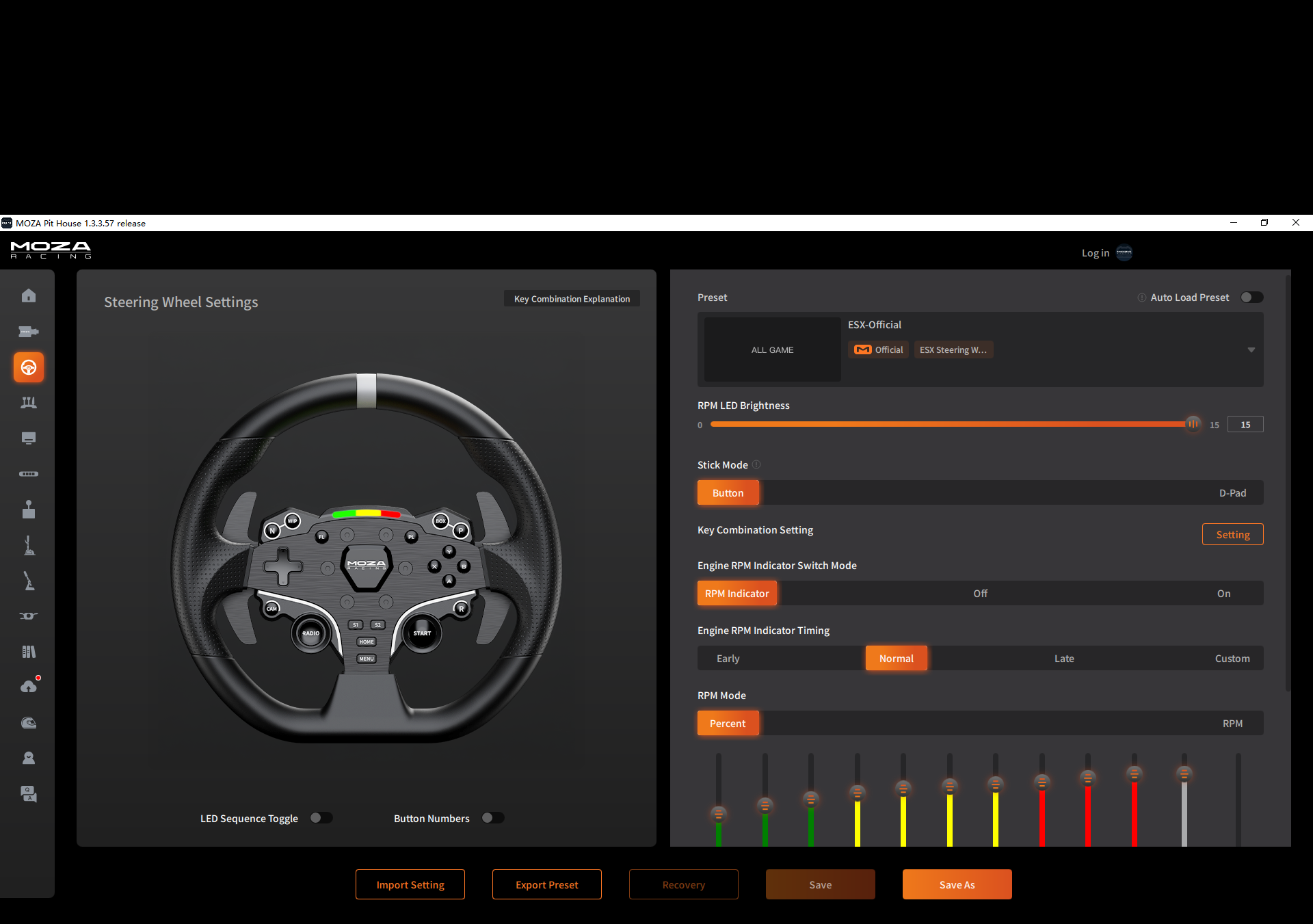 - Configurable LEDS (MOZA Pit House): Supported