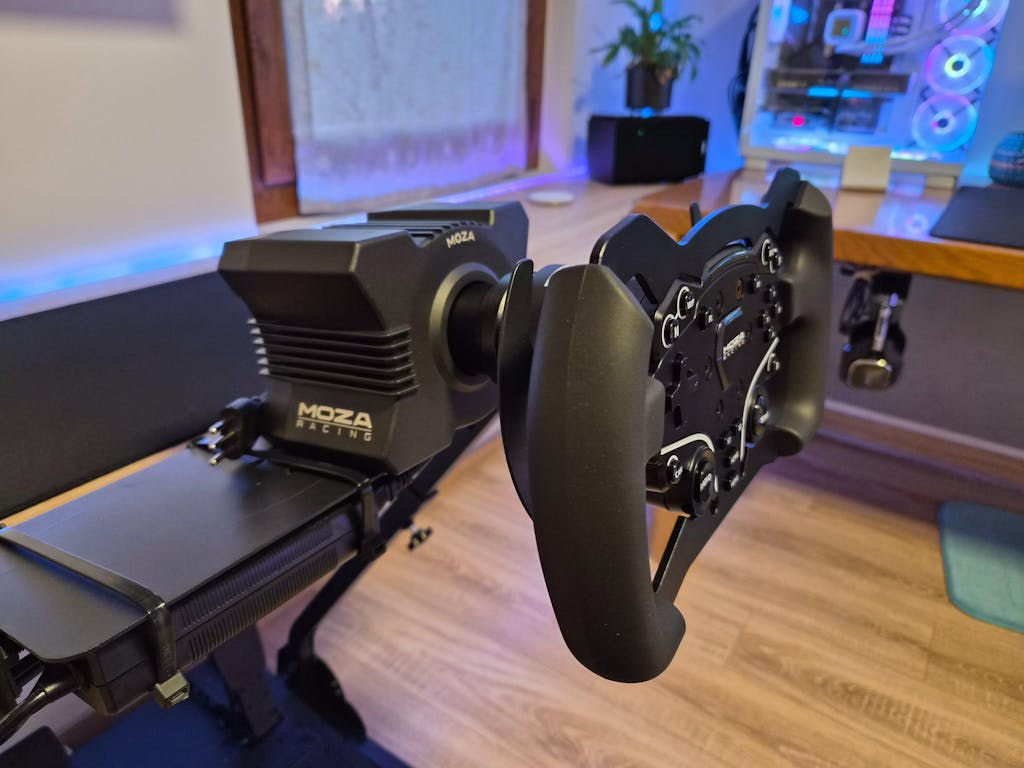 Upgrade your MOZA ES wheel with the 280mm Formula Wheel Mod. Crafted from aviation-grade aluminum with comfortable rubber grips for precise and immersive racing.